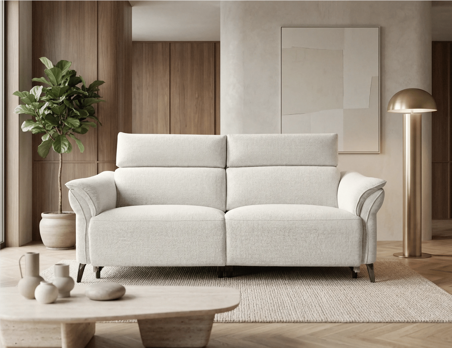 El model Vento està fabricat amb estructura de fusta i contraxapat, oferint estabilitat i resistència a l'ús diari. Es presenta entapissat en tela MILAN antitaques. Incorpora sistema de 2 relax elèctrics Paret Zero, permetent la seva col·locació prop de la paret sense perdre funcionalitat. Integra mecanisme relax amb doble peus i posició Zero Gravity, que afavoreix una postura més equilibrada i confortable. Destaca també el capçal elèctric elevable i reclinable, que permet un ajust més precís de la zona superior. Els seients combinen HR de 28 kg amb molls ensacats, aportant adaptabilitat i bona recuperació, mentre que els respatllers farcits de fibra siliconada proporcionen una acollida confortable. Cada seient suporta fins a 150 kg i inclou botonera amb ports USB i USB-C, botó de tancament simultani “HOME”, connexió ràpida del darrere i pota metàl·lica. Se serveix en 2 mòduls per facilitar-ne el transport.