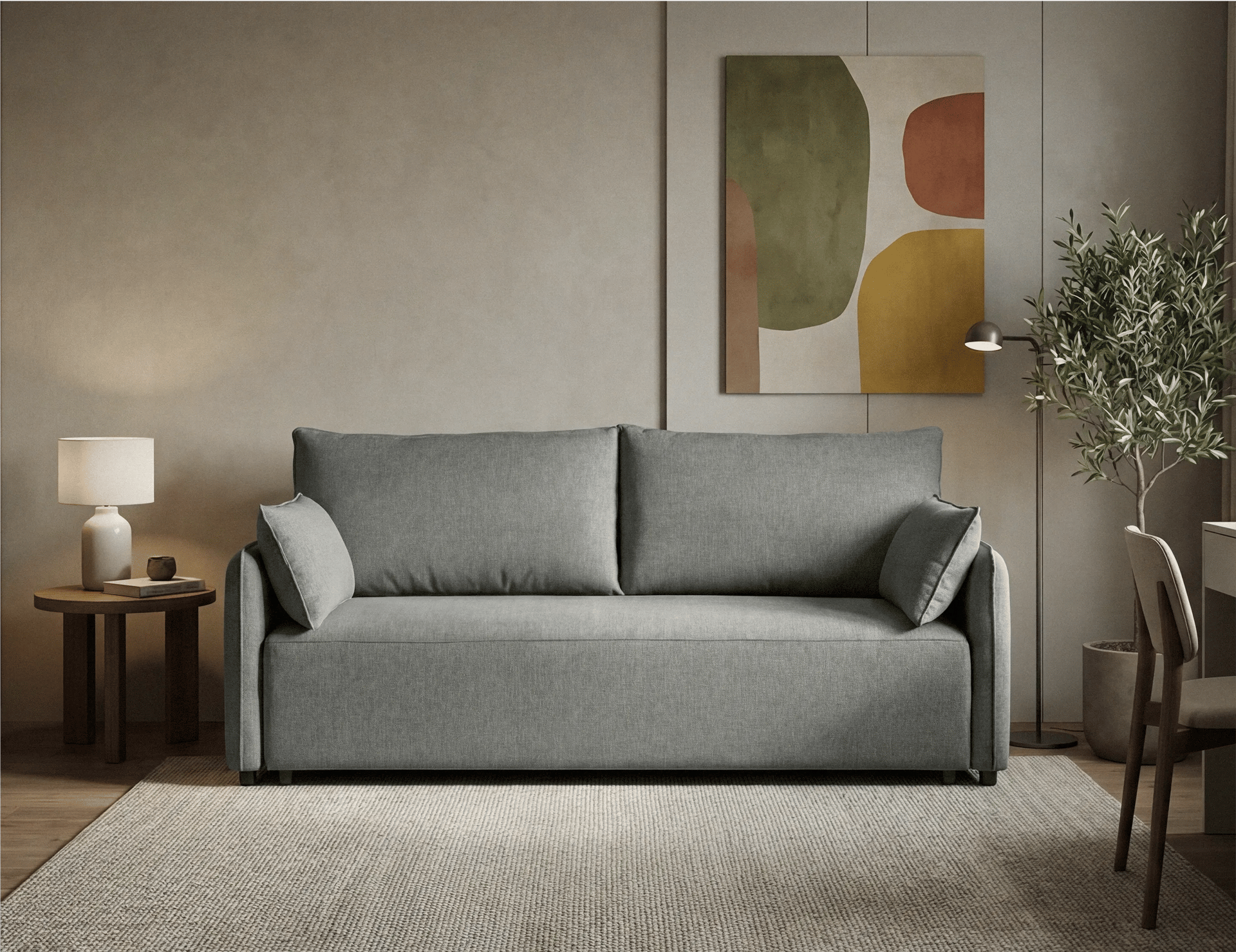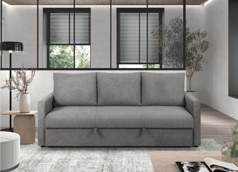 El sofà-llit Saona és una solució funcional i compacta per a espais que requereixen practicitat sense renunciar al disseny. La seva estructura està fabricada en fusta de pi massís i l'entapissat en tela STAR Easy Clean garanteix durabilitat i fàcil manteniment. Els respatllers estan farcits de gomaescuma picada, i el seient inclou escuma HR de 25kg suau, ideal per a un ús diari.