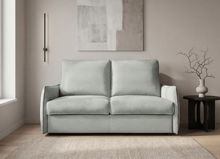 El sofà llit Hydra destaca pel sistema d'obertura italià, ideal per als que busquen funcionalitat sense renunciar al disseny. La seva estructura combina acer i fusta de pi massís, garantint resistència i estabilitat. L'entapissat en tela NASERA Easy Clean en facilita el manteniment diari.